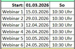 Webinar-Wiederholungen für alle ehemaligen Teilnehmer/innen dieses Seminars sind kostenlos!